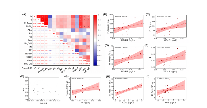 在成果一研究的基础上,本研究尝试将荧光分析技术用于湖泊内污染物的评估。与传统技术相比,这种研究模式实验程序更为简易,实验结果更为直观。虽然这类技术在水样中能够特异性检测MC-LR,这类研究为快速评估湖泊各区域MC-LR的浓度奠定基础。该研究在环境与生态学期刊Environmental Pollution, 342, (2024) 123123上发表题为“Analyzing MC-LR distribution characteristics in natural lakes by a novel fluorescence technology”的论文(论文链接:https://authors.elsevier.com/a/1iFACzLNSf-d7, IF =8.42022硕士研究生胡湘玉为论文第一作者刘勇教授为该论文的通讯作者bat365中文官方网站为第一通讯单位。
