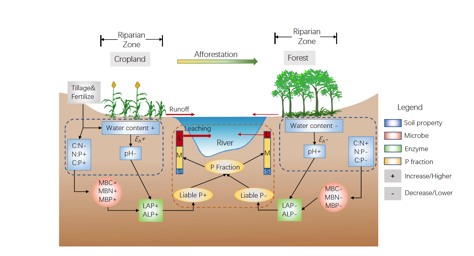 进展三:河岸带造林土壤磷组分的分布及其驱动机制