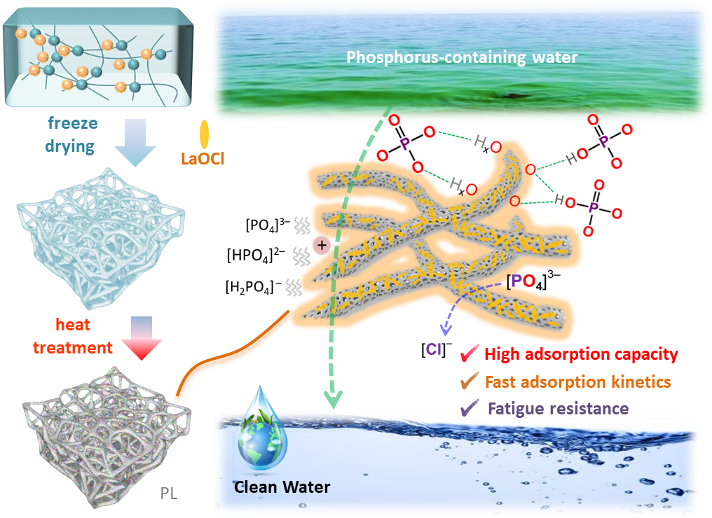 含磷废水的无序排放对水生态平衡造成日益严重的影响,如造成水体富营养化和生态系统失衡,严重威胁人类和水生动物的健康。与此同时,随着人口快速增长,导致磷资源匮乏问题也逐渐凸显。吸附技术在处理低浓度磷污染水体方面独具优势,同时吸附后的磷可以直接或间接地被重新利用。研发团队针对水生态环境中普遍存在的富营养化现象,应用先进的技术工艺制备多种功能化吸磷材料,旨在提高吸附剂的安全性和实用性的同时实现磷的去除和回收,为解决湖泊河流等水体中富营养化问题奠定理论基础,同时促进磷吸附与回收利用技术在水生态领域的有效发展。具体成果如下: