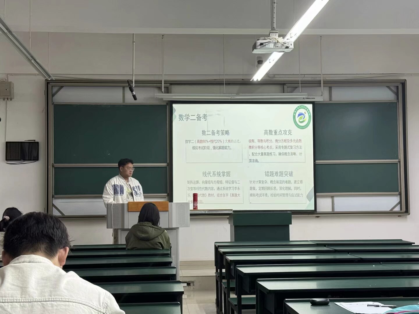 为了帮助2026届的同学们更好地了解考研的考试形式和题型,规划复习路线,提高备考效率,bat365中文官方网站于2025年3月28日18:30在格物楼2105和2107教室举办了考研经验分享会。本次宣讲会共邀请我院7位考研上岸的学长学姐主讲,由李怡槿和王洪宇两位同学主持,吸引了众多即将步入考研征途的同学参与。