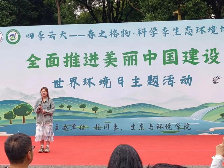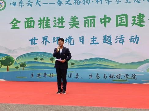 中午十二点三十分,此次活动由主持人汤鉴拉开了帷幕。随后,张志明副院长发表了开幕讲话,点明了此次环境日的主题和目的,并预祝本次活动圆满举办。最后,在23级杨子莹同学的一首《你啊你啊》美妙的歌声中结束了此次开幕式。