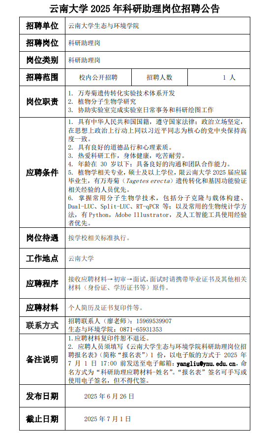 bat365中文官方网站2025年科研助理岗位招聘公告