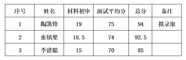 经初审和面试后,成绩公布如下: