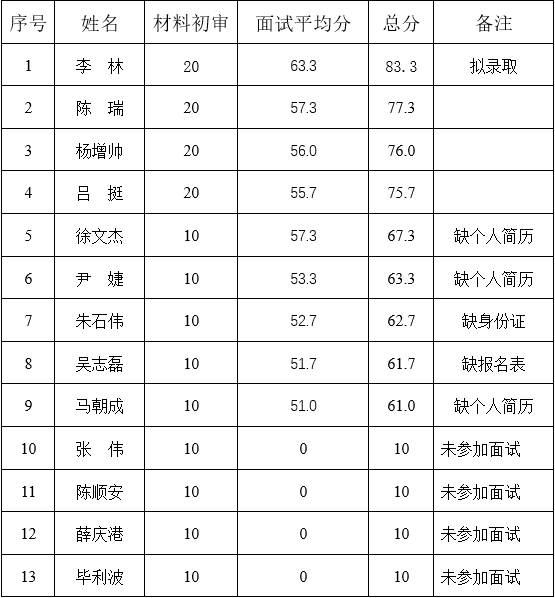bat365中文官方网站公开招聘科研助理岗位面试于2023年3月9日下午19:00-21:00,在腾讯会议(ID:376 219 563)进行。经初审和面试后,考生综合成绩公布如下: